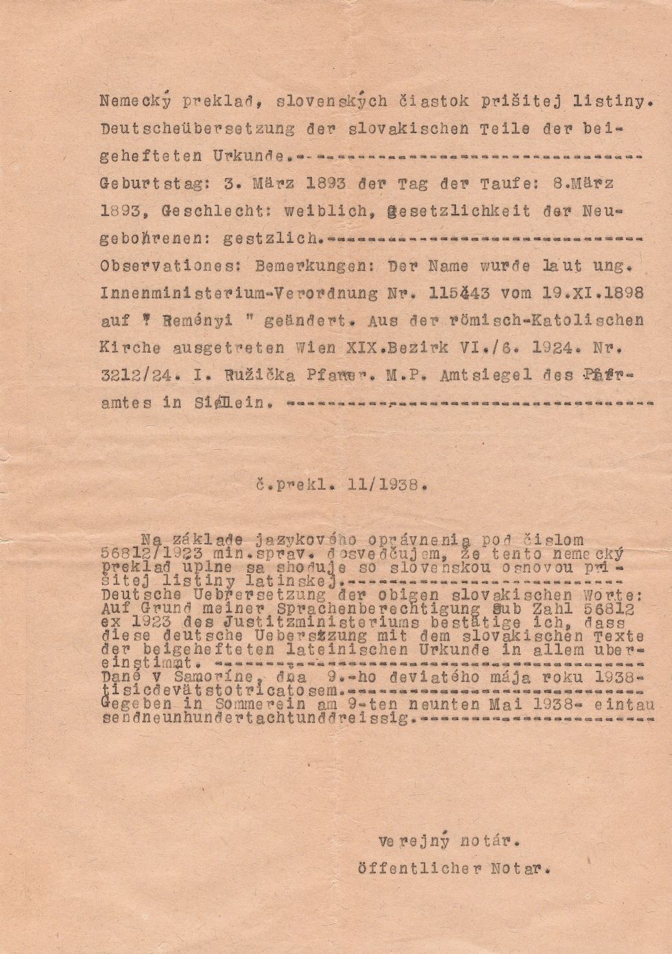 Mischung aus Slovakian und Latein enthält, wurde eine notarisierte Übersetzung in deutsch erforderlich.