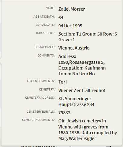 In the cemetery records his occupation is given as "Kaufmann" (Merchant/Businessman).